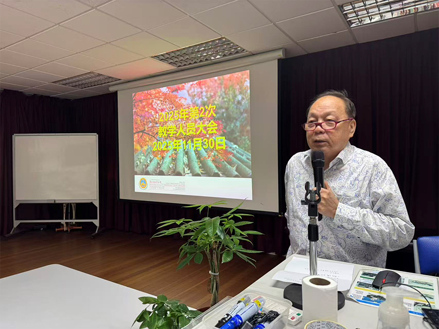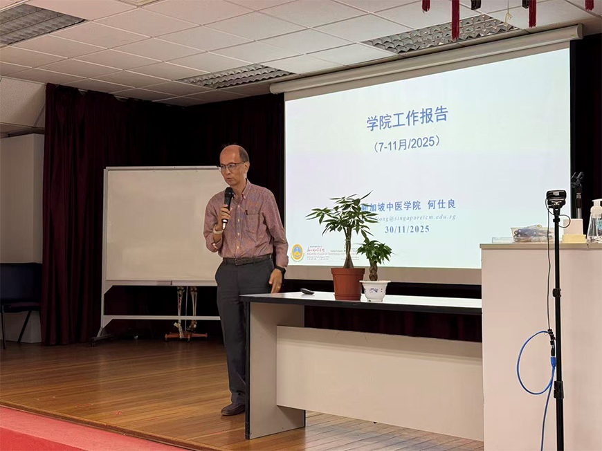 我院于11月30日下午召开2025年第二次教学人员大会。新加坡中医学院董事主席兼院长赵英杰教授、新加坡中医学院副院长何仕良教授及学院董事、教职人员近80人出席。