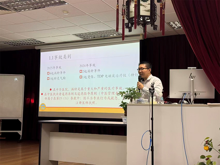 在医学风险防范专题分享中,黄普觉医师结合2024年发生的真实临床案例,重点分析漏针等医疗不良事件的严重后果,明确提出二次检查、逐针确认及规范沟通等必须落实的操作要求,提醒临床导师严守底线,确保病患安全。