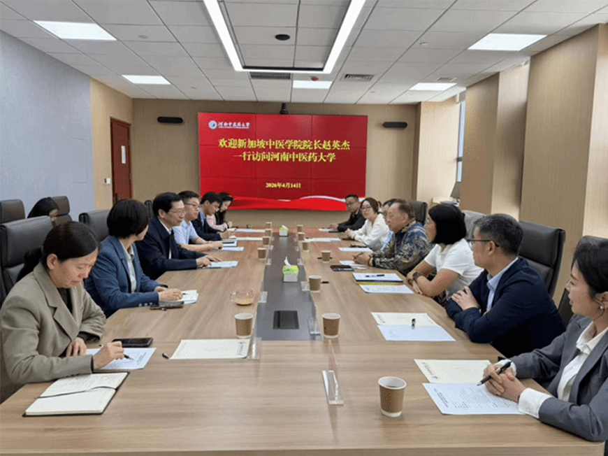 2026年4月14日至19日,应仲景宛西制药股份有限公司邀请,新加坡中医学院代表团一行在董事主席兼院长赵英杰教授的带领下,赴中国河南省开展为期六天的学术与产业参访交流活动。此次行程重点参访了河南中医药大学与仲景宛西制药总部及旗下机构,双方围绕中医药教育、科研合作、人才培养及产业融合发展等议题进行了深入交流。
